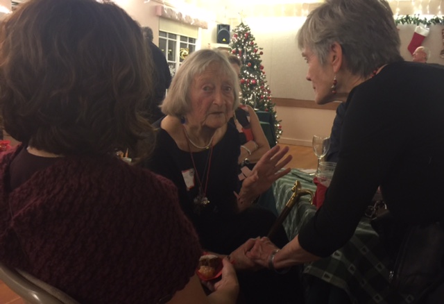 Even with one of the bigger storms of the season preventing ten reservation-holders from attending, nearly seventy members enjoyed the re-imagined Neah-Kah-Nie Community Club holiday party at the Pine Grove on December 13th. Jingling ‘n’ Mingling in the festive but informal atmosphere, members were treated to gourmet catered savories and sweets, cocktails and particularly good wine this year. A highlight of the evening was a belated 99-th birthday toast to longtime member Carol Povey, who declared it the best NKN Club holiday party ever!